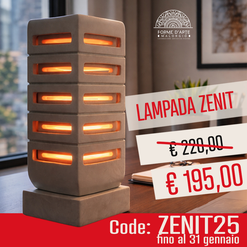 Lampada realizzata a mano in autentica Pietra leccese, lavorata artigianalmente secondo tradizione salentina.